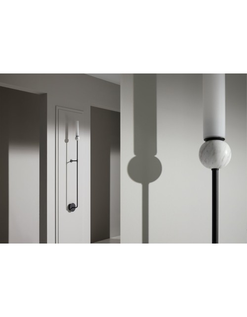 Delie to lampa składająca się z kombinacji: marmuru, metalu i szkła.